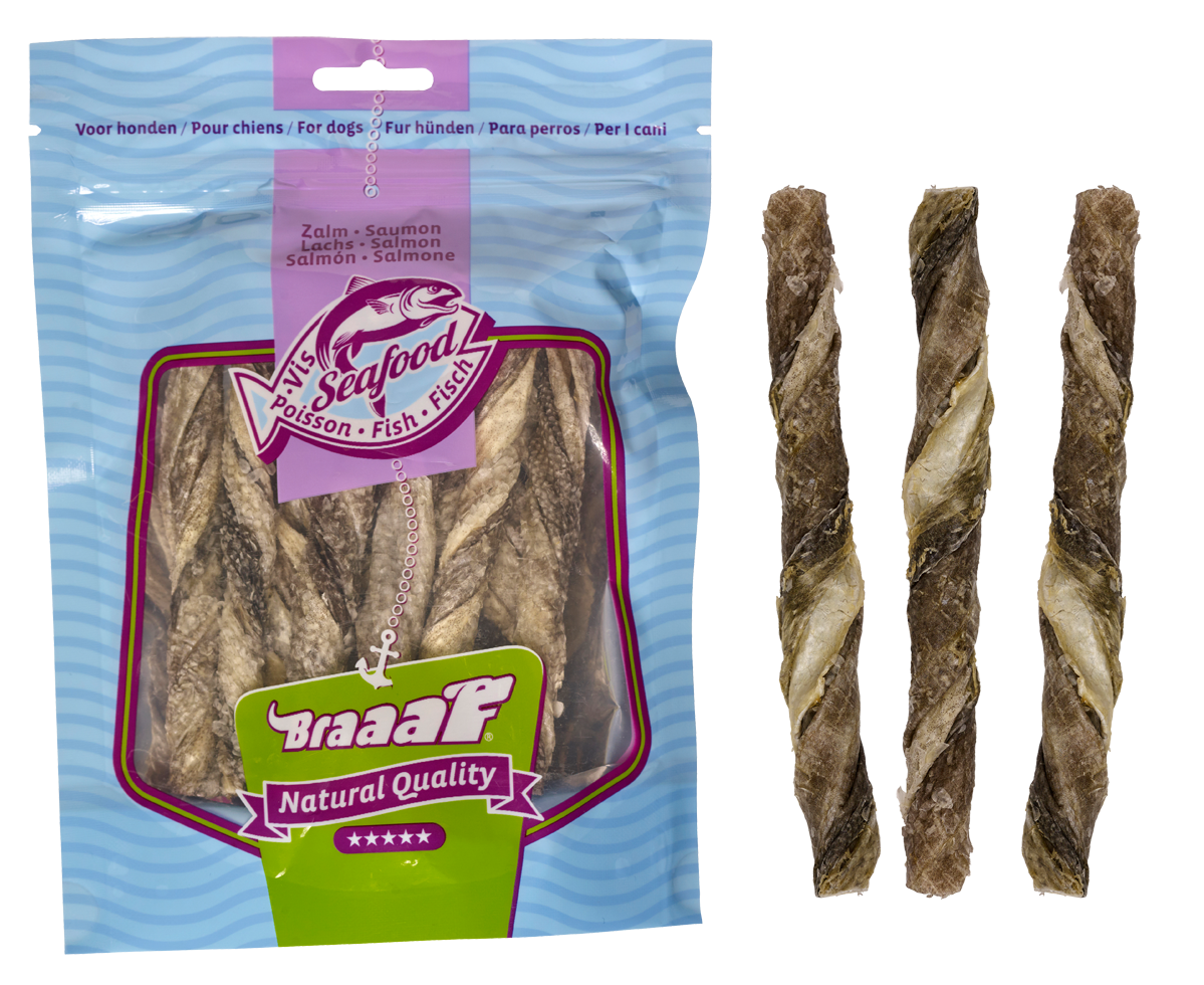 100% aan de lucht gedroogde Alaska zalm met essentiële Omega 3 vetzuren voor een gezonde huid en vacht. Zonder toevoeging van kunstmatige kleur en smaakstoffen. Naast het kauwplezier helpt dit product bij het reinigen van de tanden.