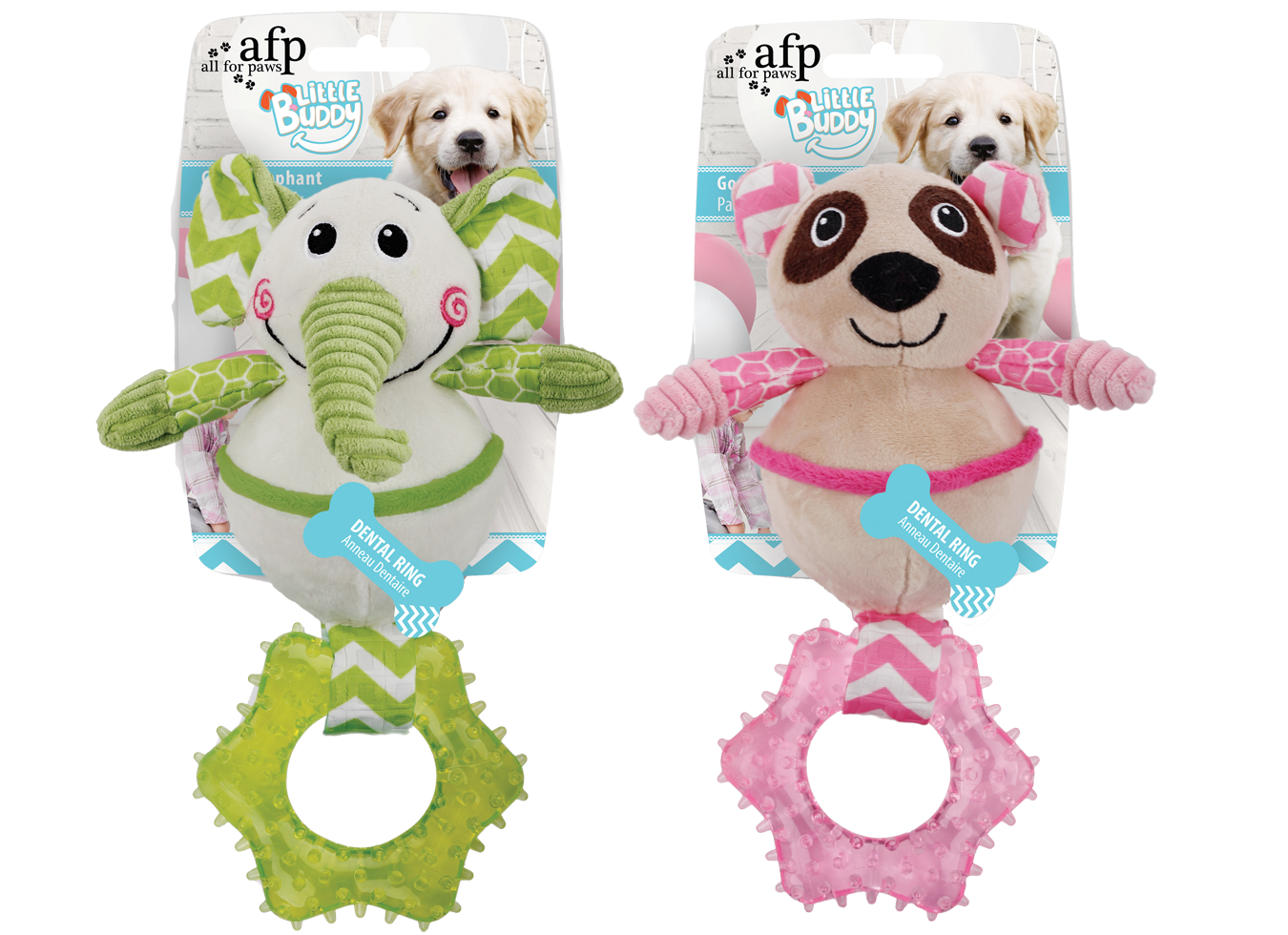 Het ultieme bijtring met knuffel-speeltje inc. squeaker (pieper) voor puppies! Verzorgt tanden en masseert het tandvlees.