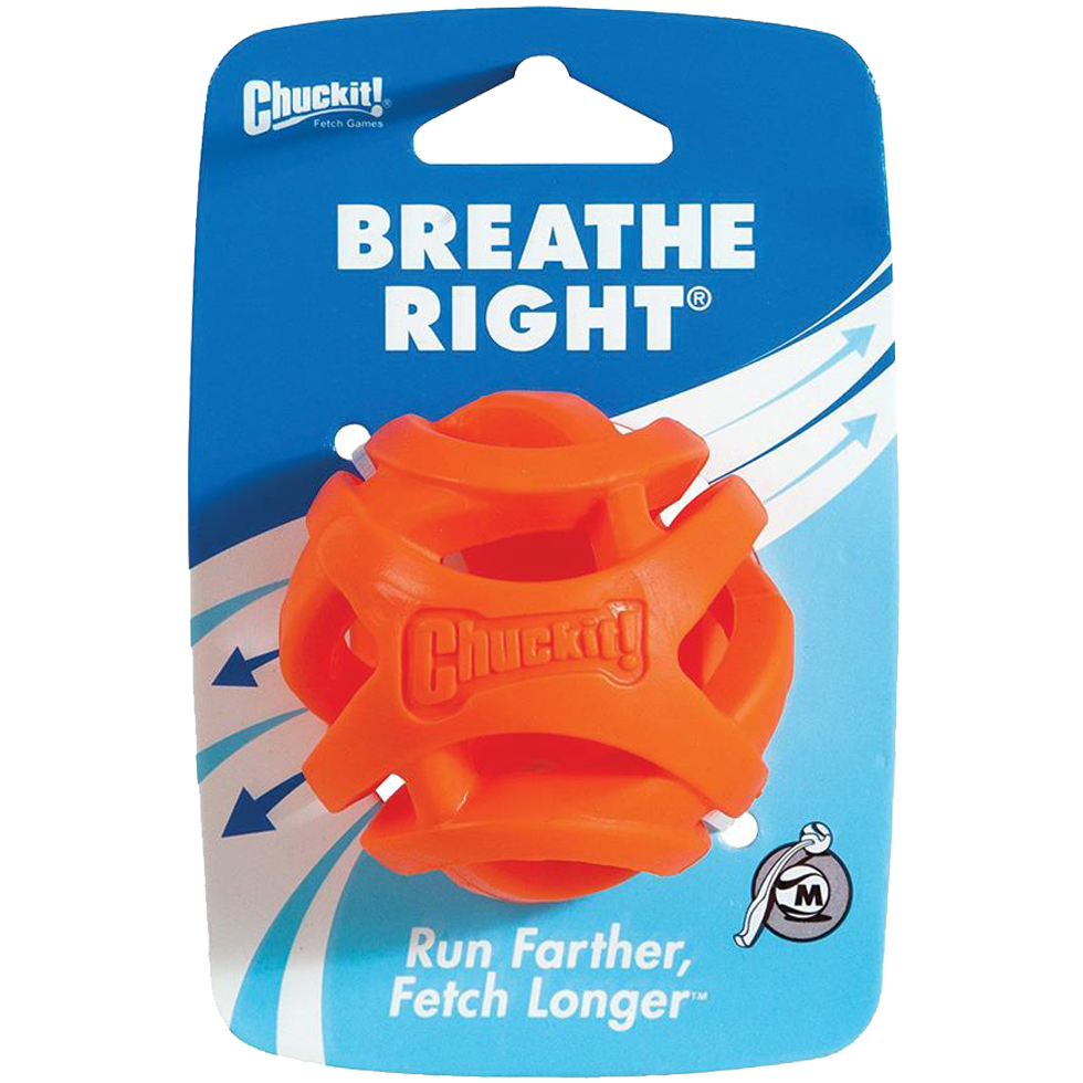 Gooi verder, apporteer langer! De Chuckit Breathe Right Fetch Ball is een sterke bal die is ontworpen om ademhaling en luchtstroom in de longen van honden te vergemakkelijken tijdens het apporteren. Dankzij deze bal zal u hond het apporteren 30 tot 50% langer volhouden.