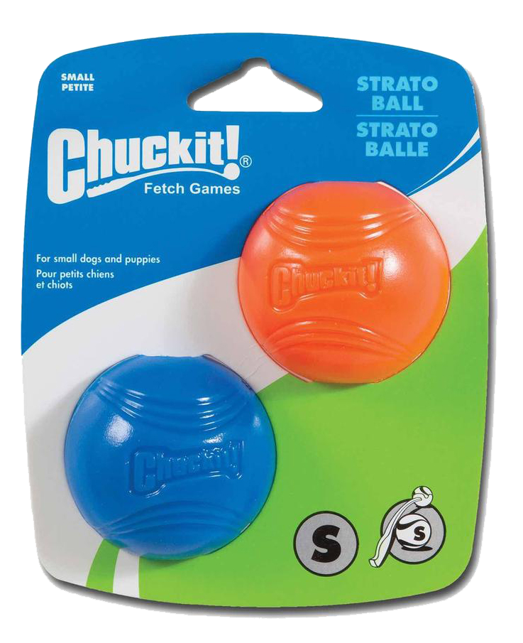 Chuckit Strato Ball Natuurlijke rubberen bal die perfect stuitert en super duurzaam is. Goed zichtbaar door de opvallende kleuren! Formaat CHUC31393: Small - ø 5 cm CHUC197201: Medium - ø 6 cm
