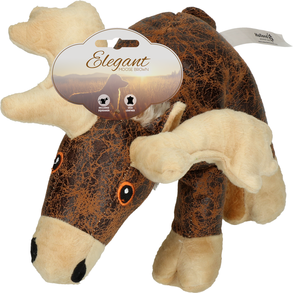 Deze elegante knuffel is gemaakt van skai leer, fleece en pluche. Daarnaast bevat het een pieper voor extra speelplezier.