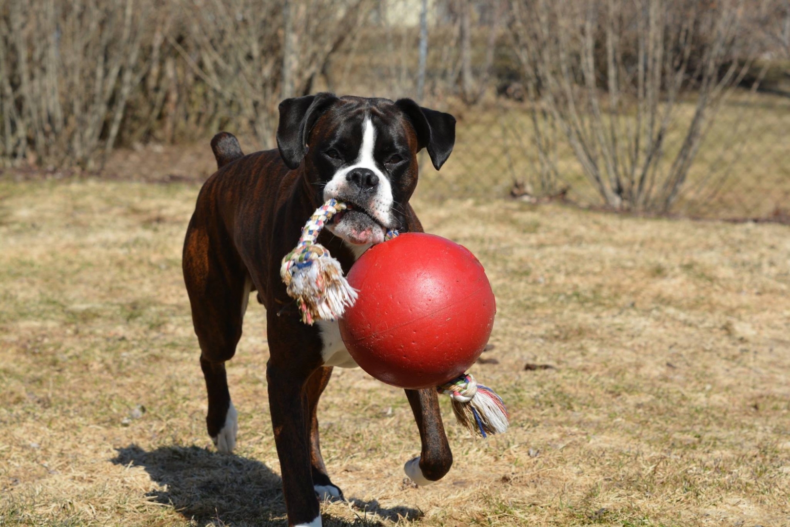 De speelbal voor honden, die zich vanzelf weer opblaast.