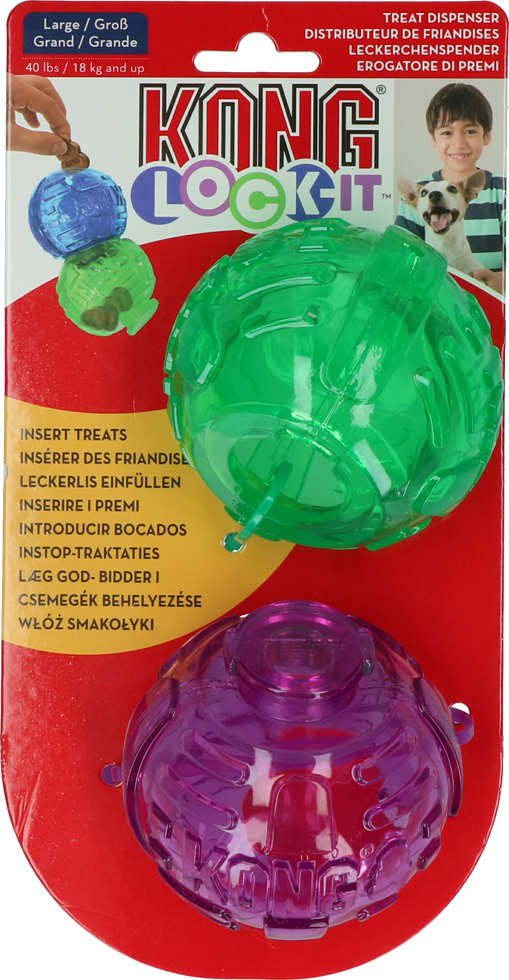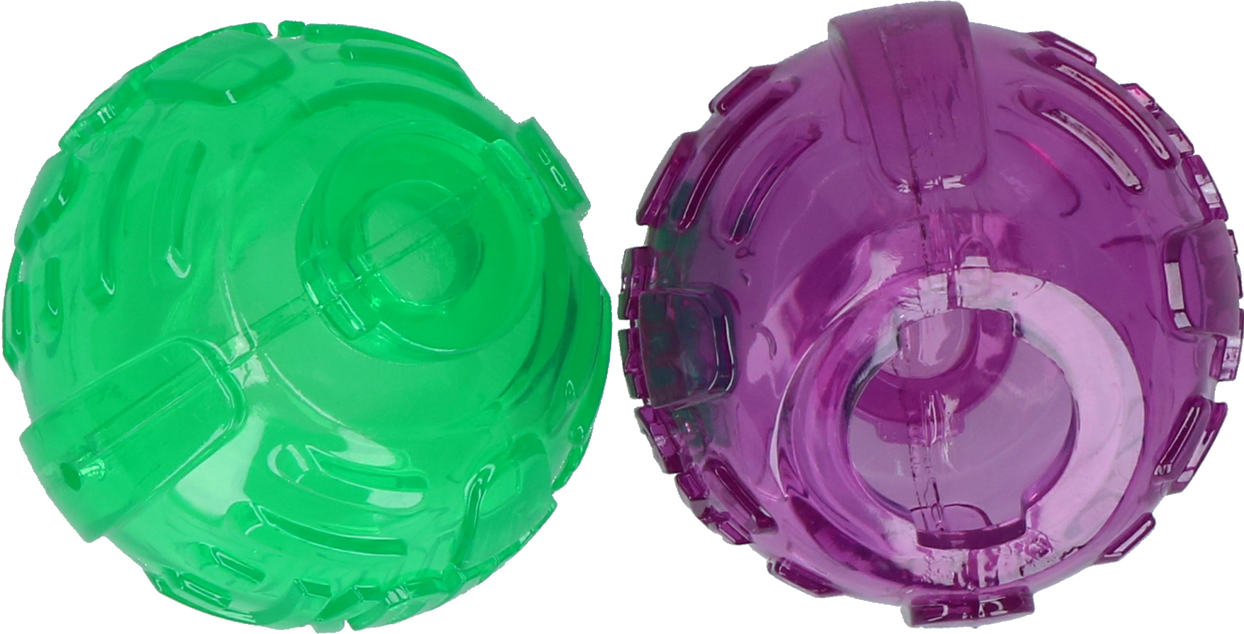 Dit unieke speelgoed is zo ontwikkeld, dat het als een puzzel in elkaar gezet kan worden. De ballen kunnen makkelijk gevuld worden met de lievelingstraktaties van uw hond, maar het wordt een hele uitdaging deze er weer uit te krijgen! Kan ook worden gebruikt om brokjes in te doen om schrokken te voorkomen en uw hond mentaal uit te dagen.