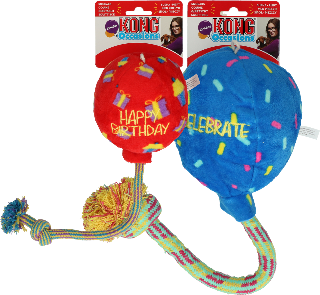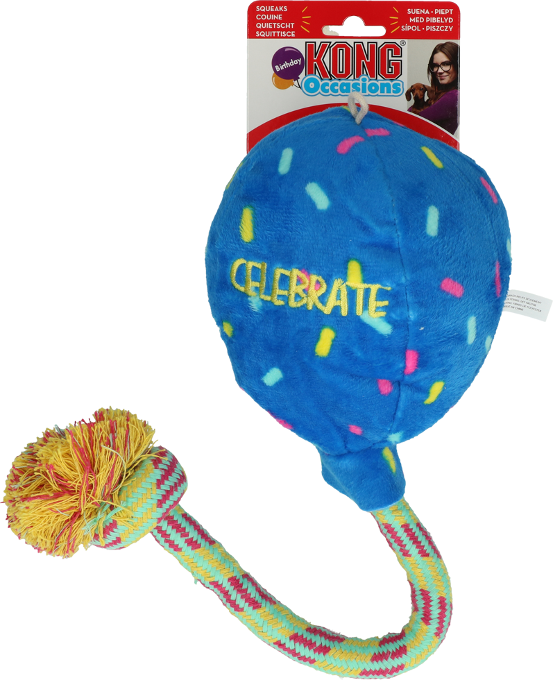 De verjaardagsballon van KONG geeft een verjaardag een extra feestelijk tintje door het flosstouw dat aan de zachte ballon vastzit. Het touw is tevens ideaal voor apporteer- of trekspelletjes en de knisperende en piepende geluidjes houden honden actief betrokken bij het spel met deze ballon die nooit leegloopt.