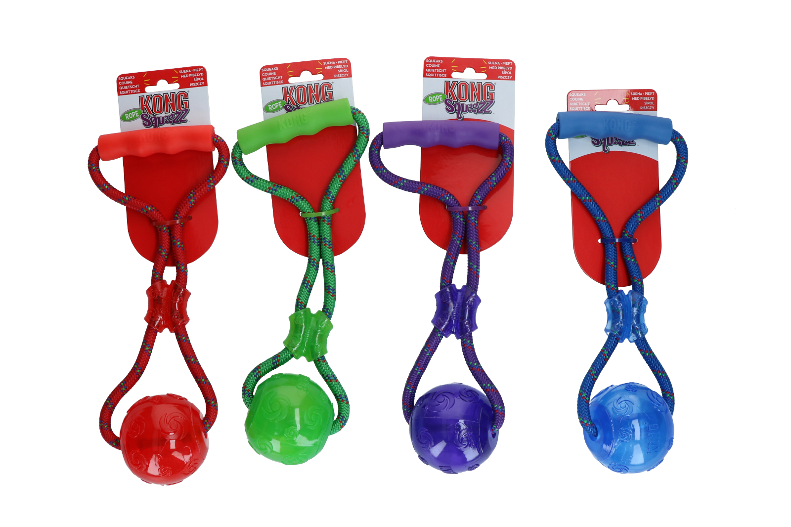Het ideale interactieve speeltje voor jou en je hond. KONG Squeezz Ball with Handle, ontwikkeld voor duurzaamheid met een verzonken, beschermde pieper, is perfect voor gebruik binnen en buiten.