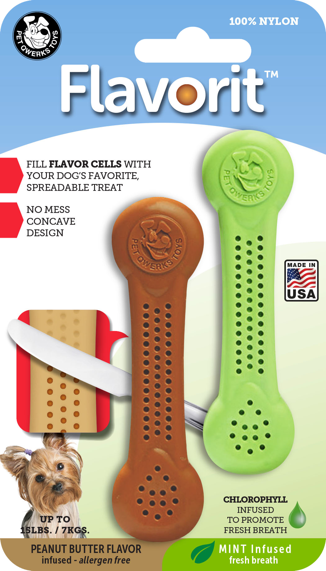 Combinatie verpakking met pindakaas en mintsmaak. Vul de cellen in dit ontwerp met u hond's favoriete smeerbare lekkernij zoals: kaas, pindakaas, banaan, appelmoes of kwark.