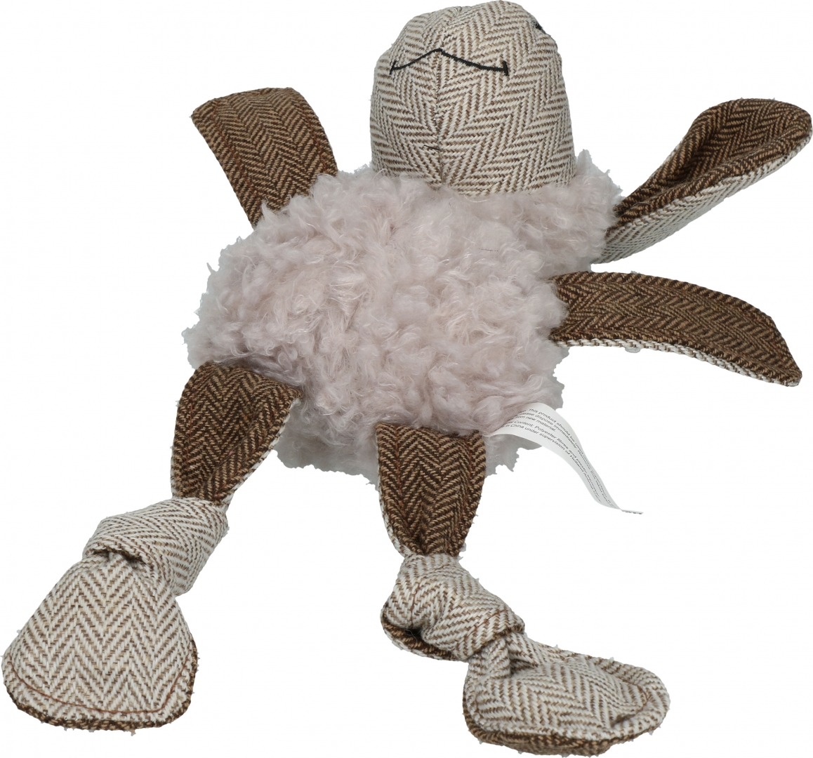 Dit knuffelschaap is gemaakt van superzachte fleece en duurzaam en sterk canvas. Dubbel gestikt en met een pieper voor extra speelplezier. Met grote oren om mee te kunnen gooien en voor trek-spelletjes met uw hond. De benen zijn van geknoopt canvas en onderin de voeten zit nog een extra pieper.