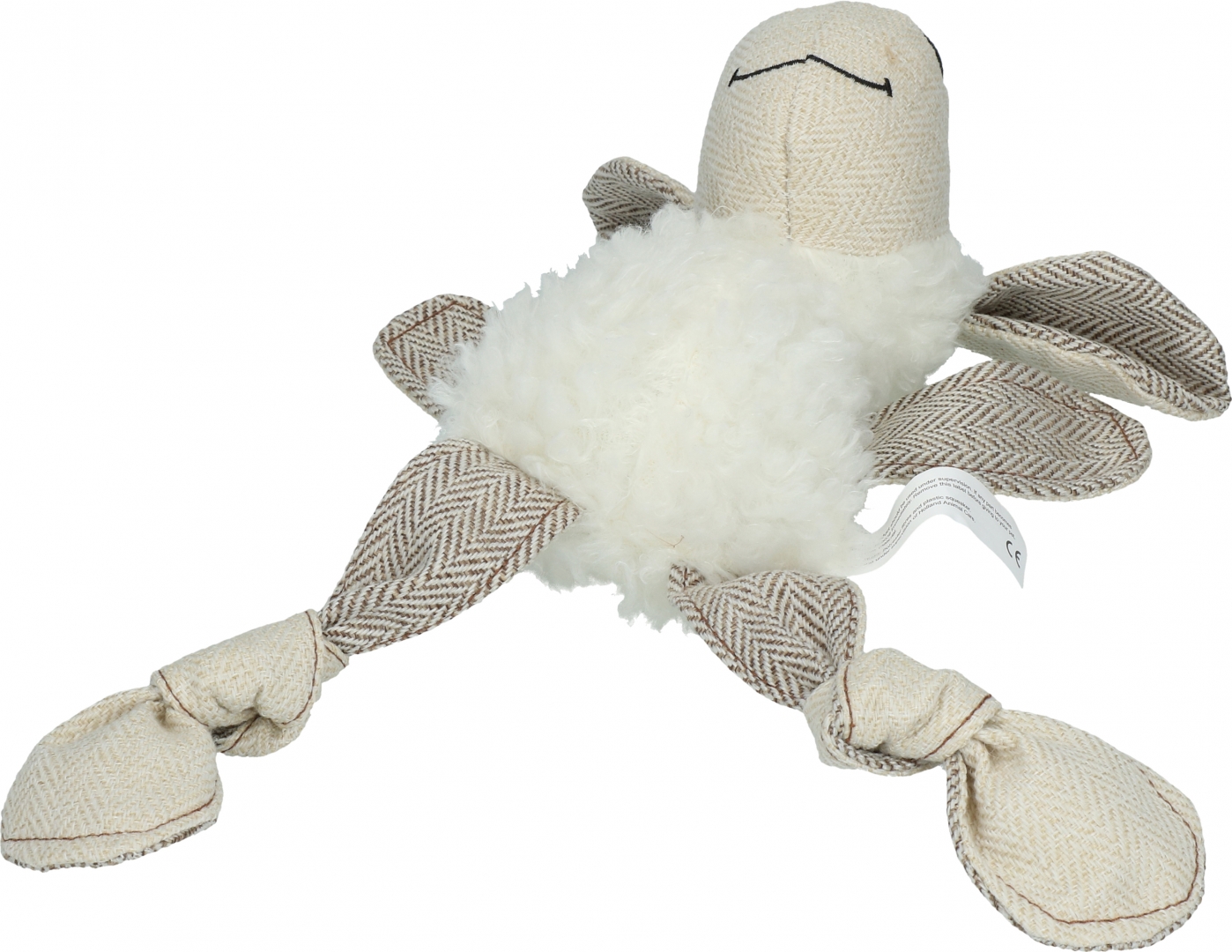 Dit knuffelschaap is gemaakt van superzachte fleece en duurzaam en sterk canvas. Dubbel gestikt en met een pieper voor extra speelplezier. Met grote oren om mee te kunnen gooien en voor trek-spelletjes met uw hond. De benen zijn van geknoopt canvas en onderin de voeten zit nog een extra pieper.