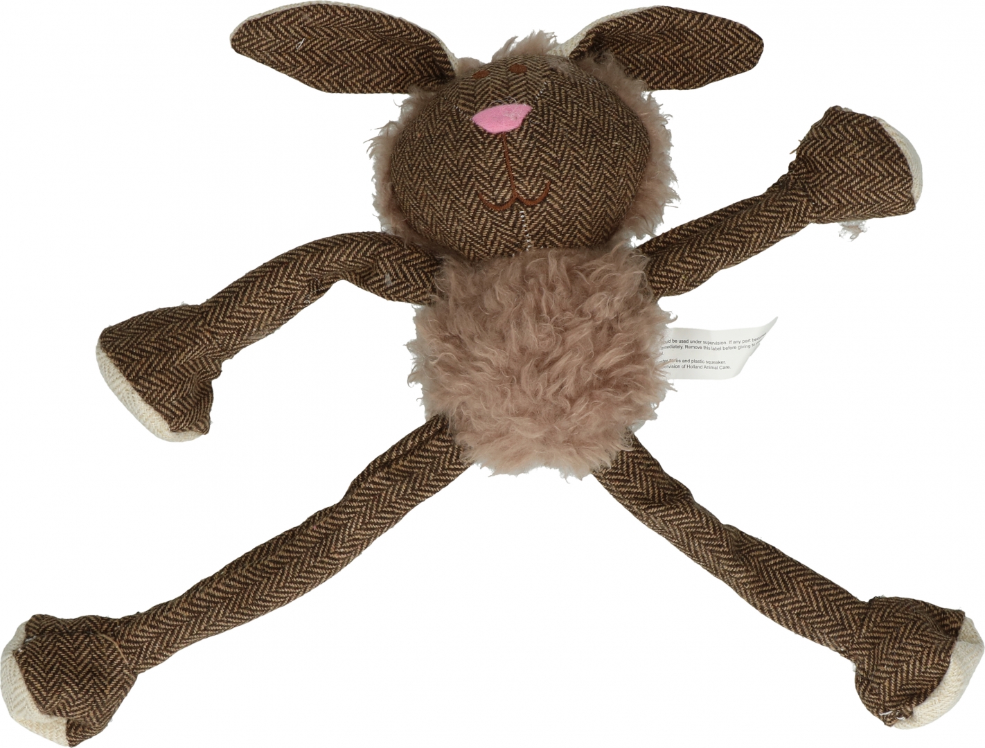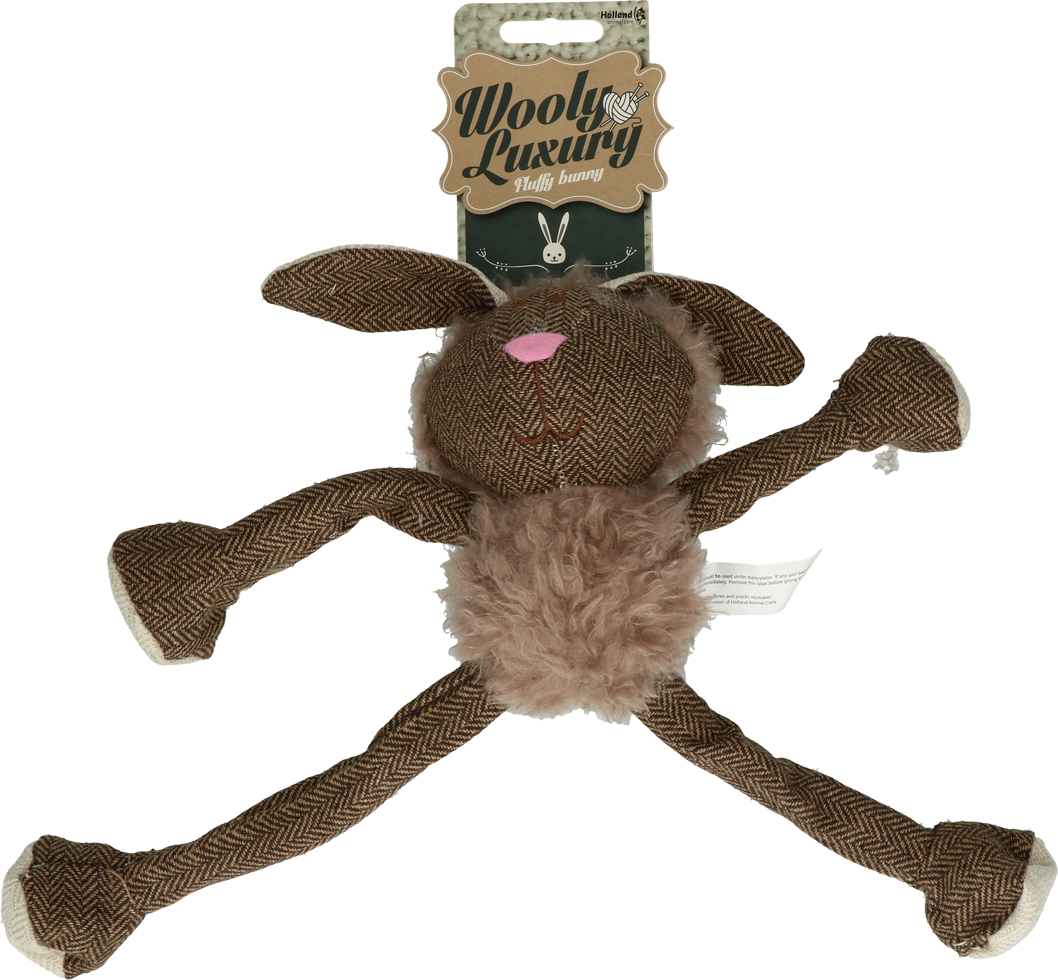 Dit knuffelkonijn is gemaakt van superzachte fleece en duurzaam en sterk canvas. Dubbel gestikt en met een pieper voor extra speelplezier. Met extra lange armen en benen van canvas om mee te gooien en om trek-spelletjes mee te spelen. De armen en benen bevatten een flos-touw en kunnen langer en korter gemaakt worden.