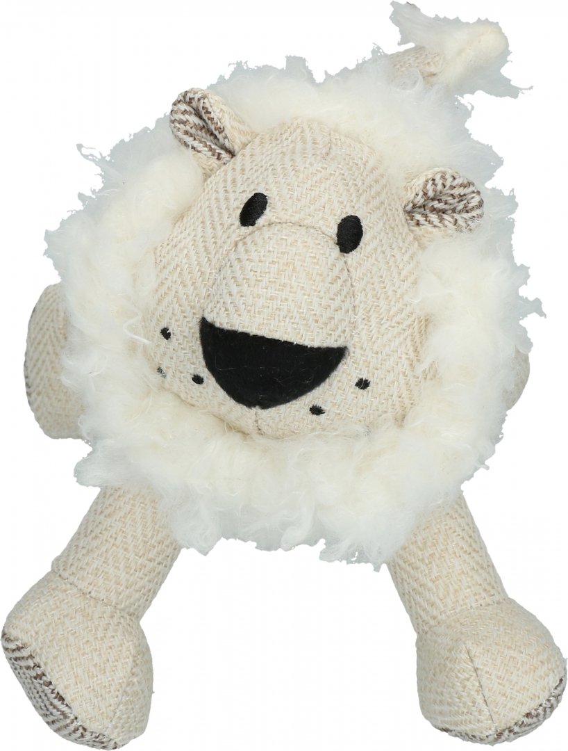 Deze stoere knuffelleeuw is gemaakt van superzacht fleece en duurzaam en sterk canvas. Dubbel gestikt en met een pieper voor extra speelplezier.