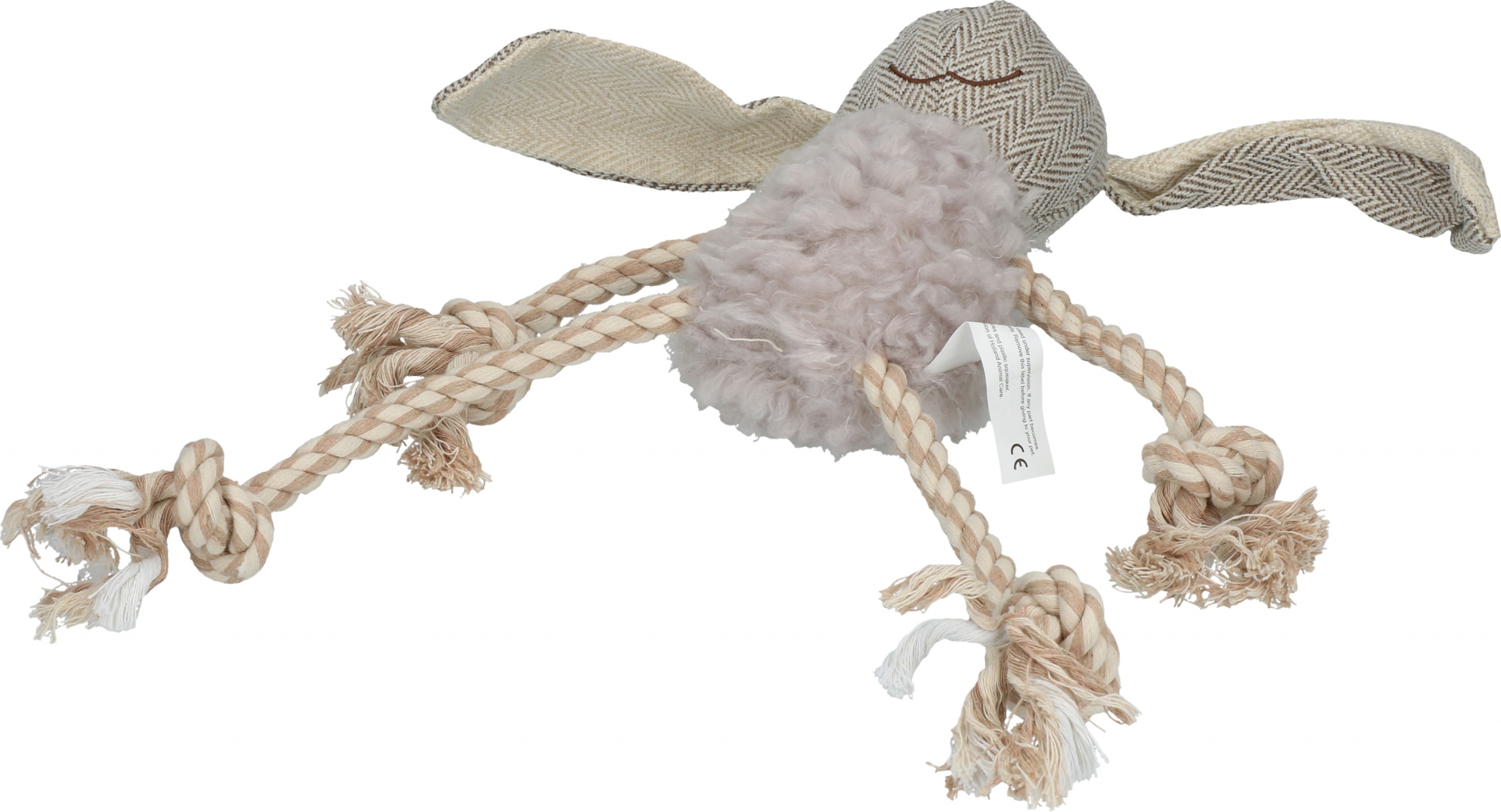 Dit knuffelkonijn is gemaakt van superzachte fleece en duurzaam en sterk canvas. Dubbel gestikt en met een pieper voor extra speelplezier. De armen en benen zijn van flosstouw om het gebit van uw hond te reinigen.