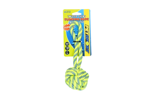 Dit speelgoed is gemaakt met de kleurcombinatie van blauw en geel. Onderzoek wijst namelijk uit dat deze kleuren goed te zien zijn voor honden waardoor dit touw makkelijk terug te vinden is.