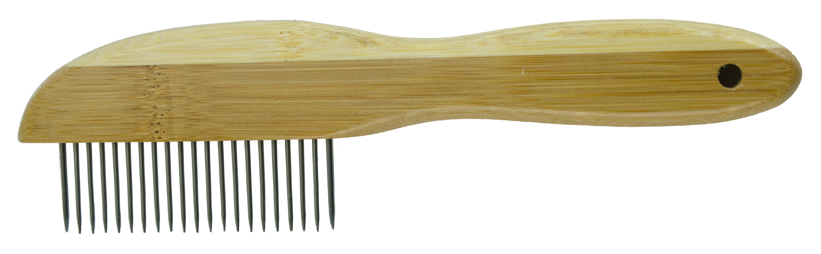 Verwijdert eenvoudig vlooien, vlooieneitjes en vlooienlarven uit de vacht. Deze kam wordt ook vaak gebruikt om vuil en rommel uit de vacht te verwijderen. Deze kammen hebben een glad handvat met prachtige hout structuur.