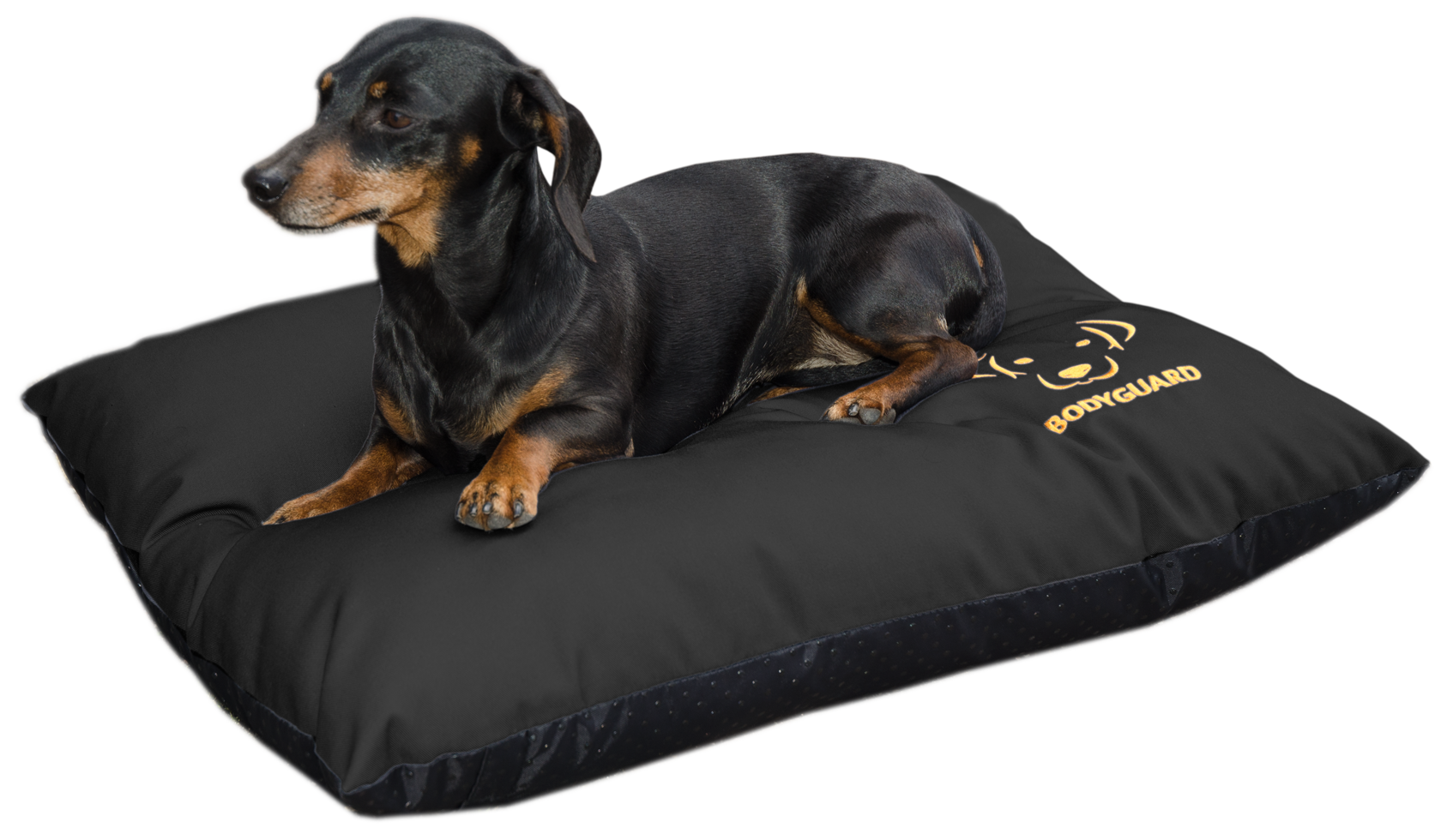 | Waar de bovenkant en van dit kussen uw hond een optimale bescherming biedt door de speciaal geïmpregneerde INSECT BODYGUARD, is de onderzijde voorzien van een speciale antislip. |