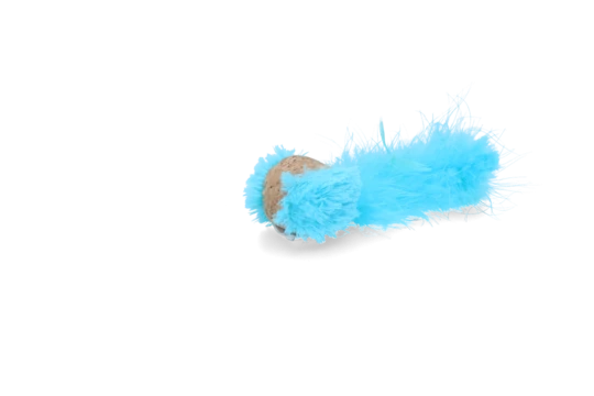 De combinatie van kurk, veren en catnip maakt dit speelgoed uniek.