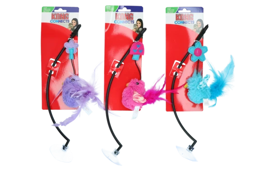 Eenvoudig te bevestigen op glad oppervlak zoals bijvoorbeeld een raam of glazen deur. Zo kan uw kat zich vermaken, ook als u er niet bent. Voorzien van vrolijke kleuren, veertjes en zachte materialen.