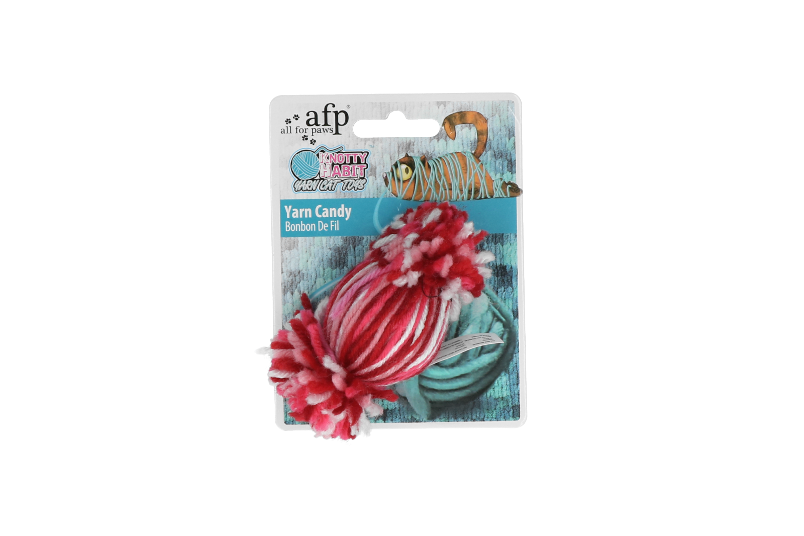 Dit leuke snoepje van garen heeft een belletje aan de binnenkant en is voorzien van Catnip. Deze combinatie maakt het uniek en onweerstaanbaar voor uw kat.