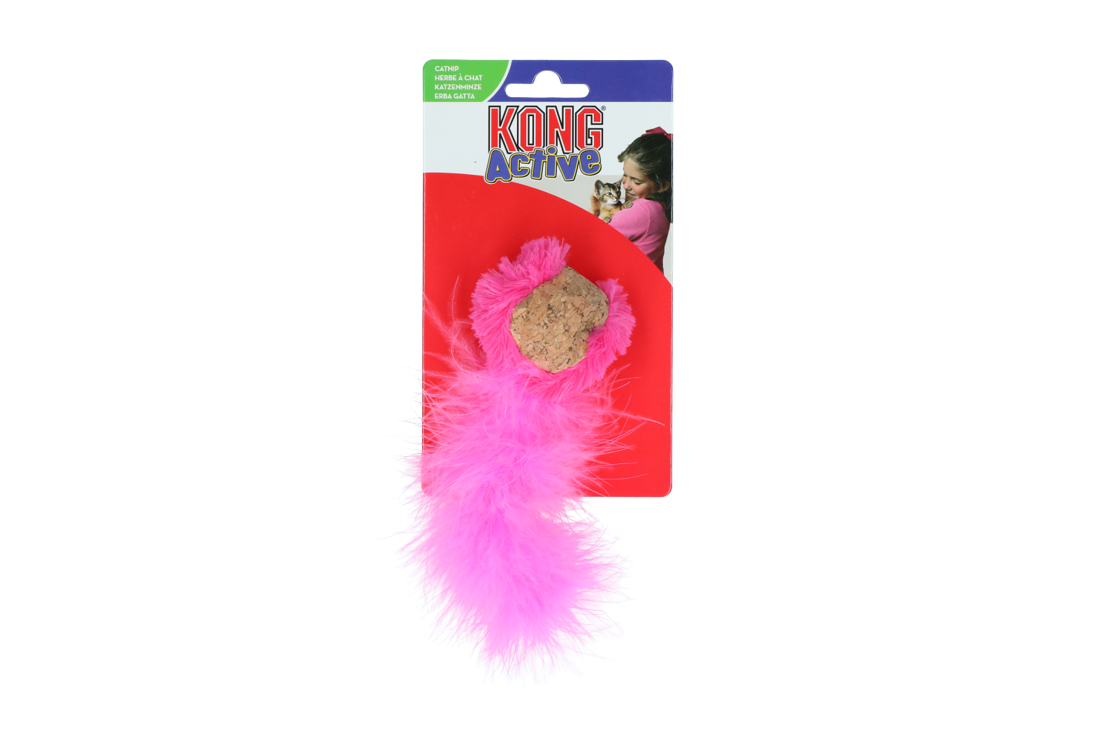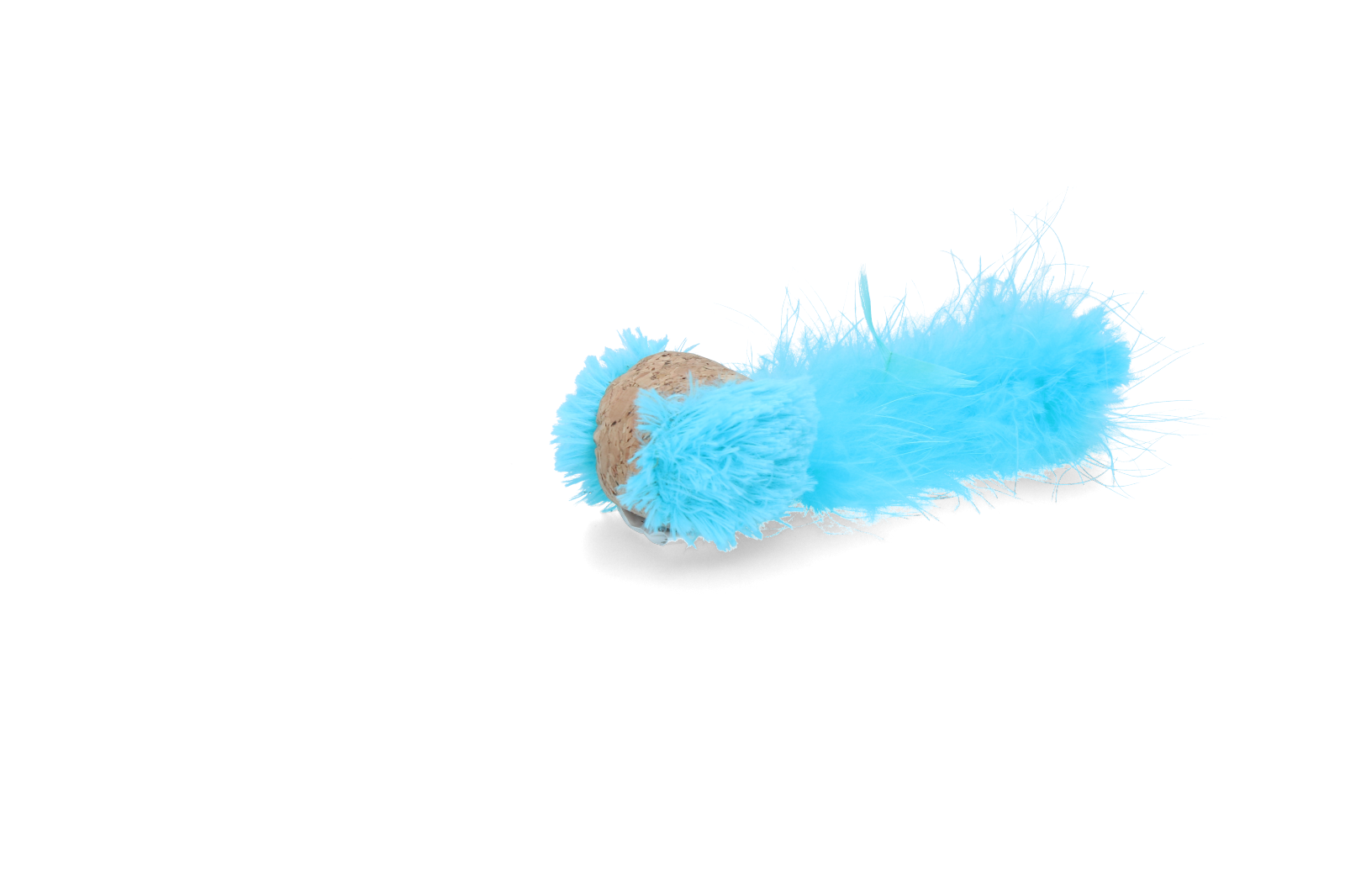 De combinatie van kurk, veren en catnip maakt dit speelgoed uniek.