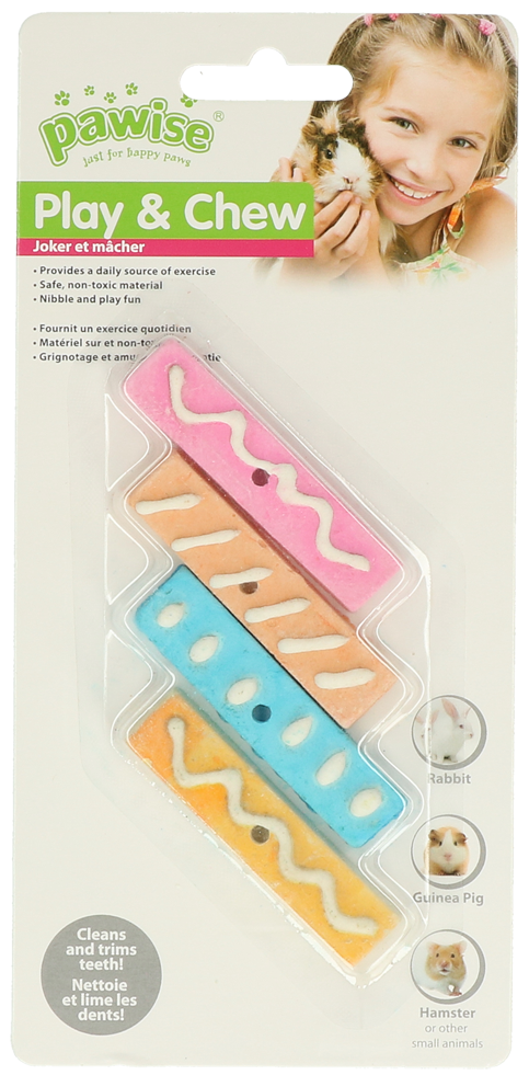 Deze snoepjes zien er niet alleen super leuk uit maar is speciaal ontworpen om de tantjes van uw knaagdier te trimmen. Ook zullen deze snoepjes uw knaagdier te voorzien van knabbel plezier. Geschikt voor konijnen, cavia's, hamsters en andere kleine knaagdieren.