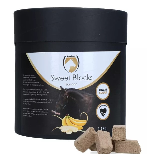 De Excellent Horse Sweet Blocks zijn een suikerarme en smakelijke traktatie voor paarden. Ze vormen de ideale, 'niet-dikmakende' beloning voor paarden en zijn tegelijkertijd een waardevolle aanvulling op het dagelijkse rantsoen en ondersteunen de algehele gezondheid van paarden. De Sweet Blocks zijn eenvoudig los mee te nemen in de tas of zak doordat ze niet kruimelen of plakken.