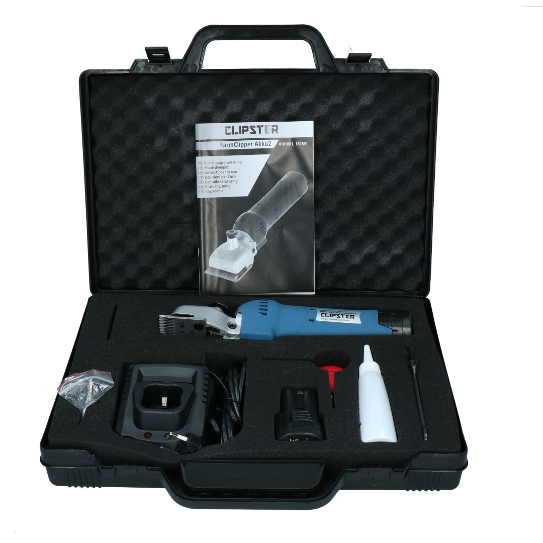 De nieuwe scheermachine op accu is ontworpen voor paarden of vee en heeft een uitstekende prijs-kwaliteitsverhouding. Het bevat twee 14,4 Volt Lithium ionen blokbatterijen, die ononderbroken scheren mogelijk maakt dankzij hun geoptimaliseerde gebruiks- en oplaadtijden.