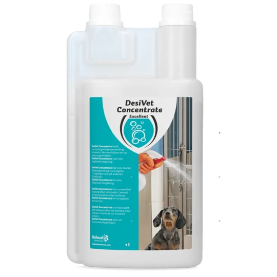 Gebruik DesiVet Concentrate voor een hygiënische omgeving. DesiVet Concentrate heeft een krachtig reinigende werking in kennels / dierenverblijven en op andere oppervlakten.