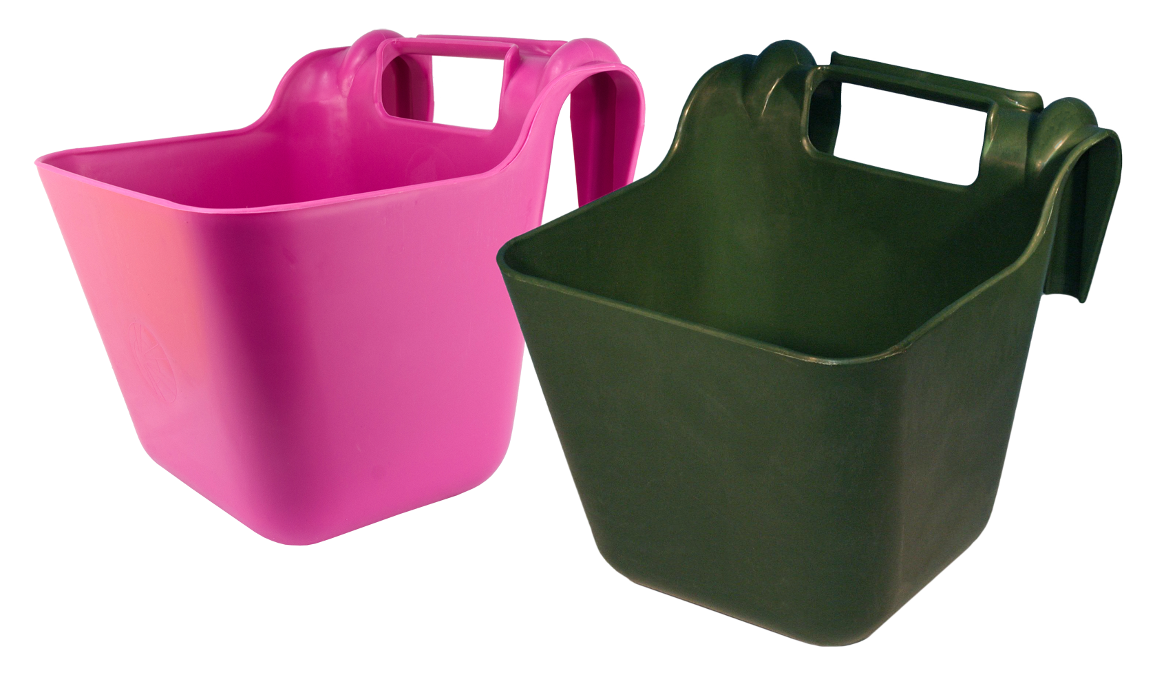 Stevige kunststof voerbak met ophangbeugels. Om over de pijp, deur of het hek te hangen. Gemaakt uit duurzaam kunststof met handvat en ophangbeugel (PP).