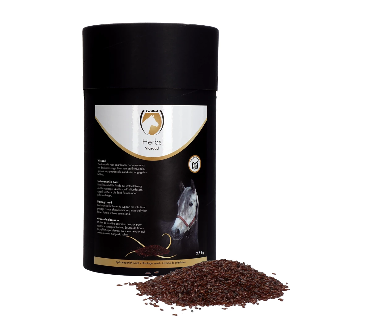 Een smakelijk voedermiddel voor paarden en biedt ondersteuning van de darmpassage. Het is een bron van psylliumvezels en is speciaal voor paarden die zand eten of gegeten hebben. Excellent Herbs Vlozaad (Psylliumzaad) kan gemakkelijk door de natte slobber verstrekt worden.
