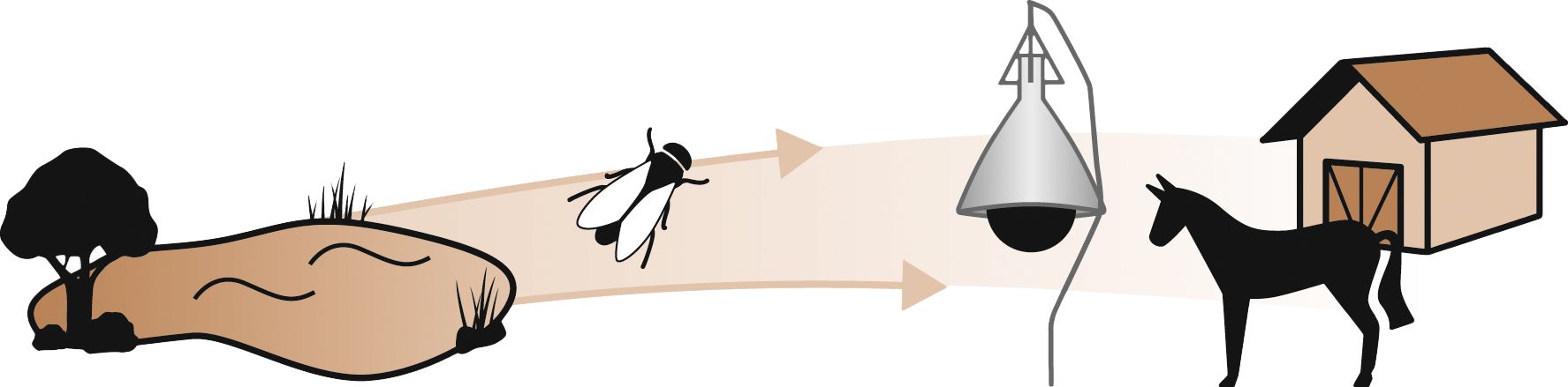 De dazenval vangt dazen door de vrouwtjesdazen te misleiden. De zwarte bal wordt verwarmd door de zon enbeweegt lichtjes heen en weer in de wind.